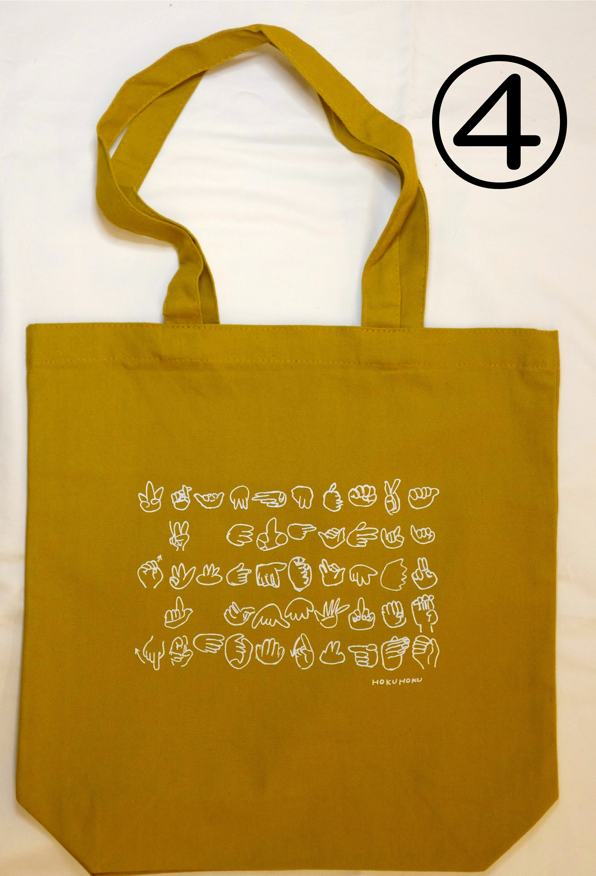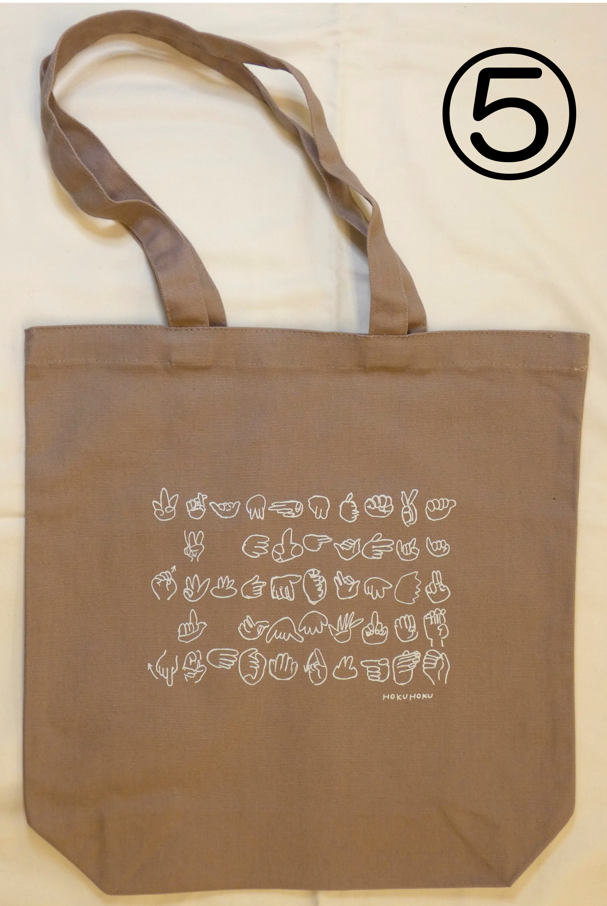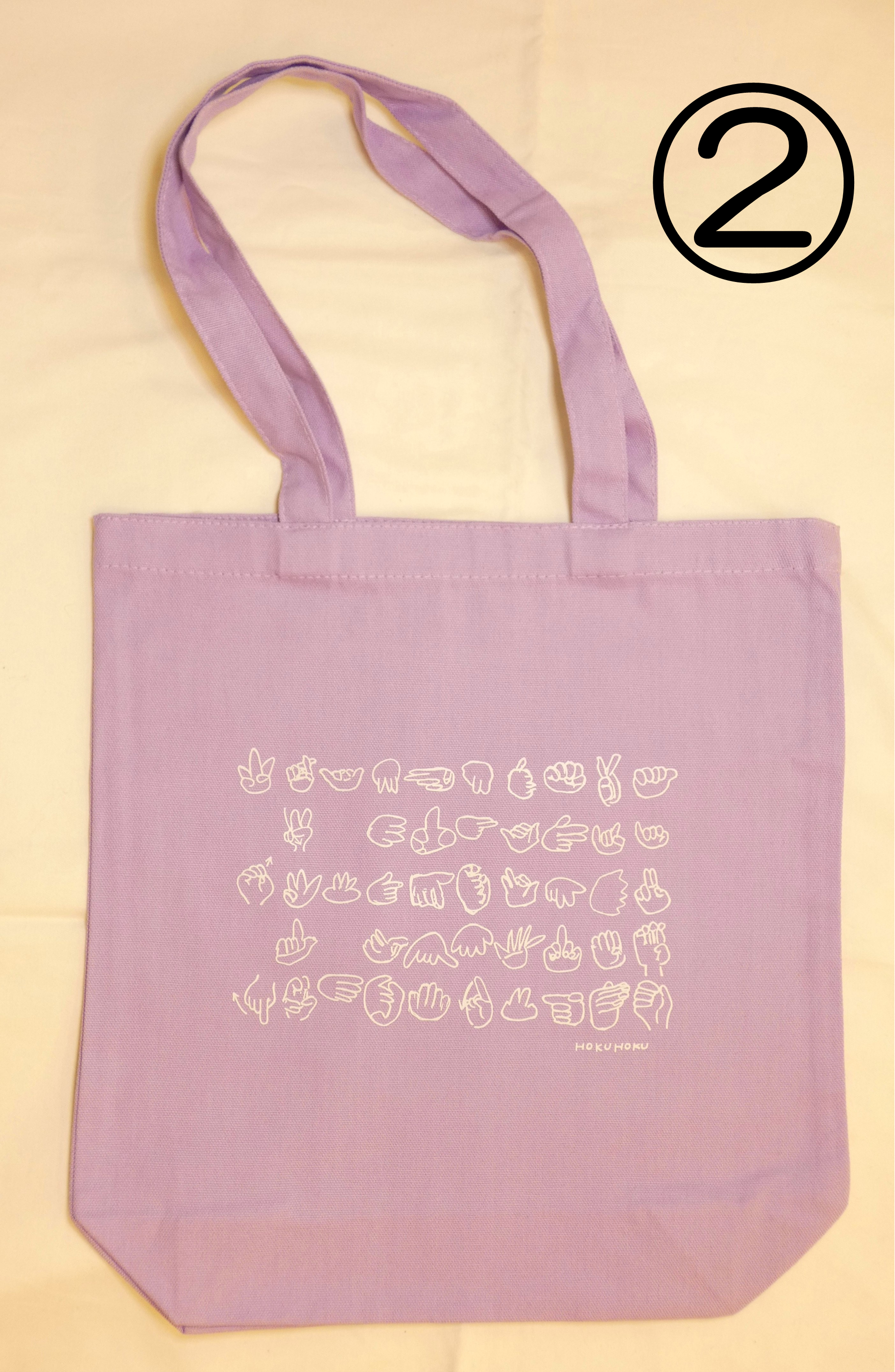 ほくほくの仲間が書いた指文字シリーズのトートバッグになります。