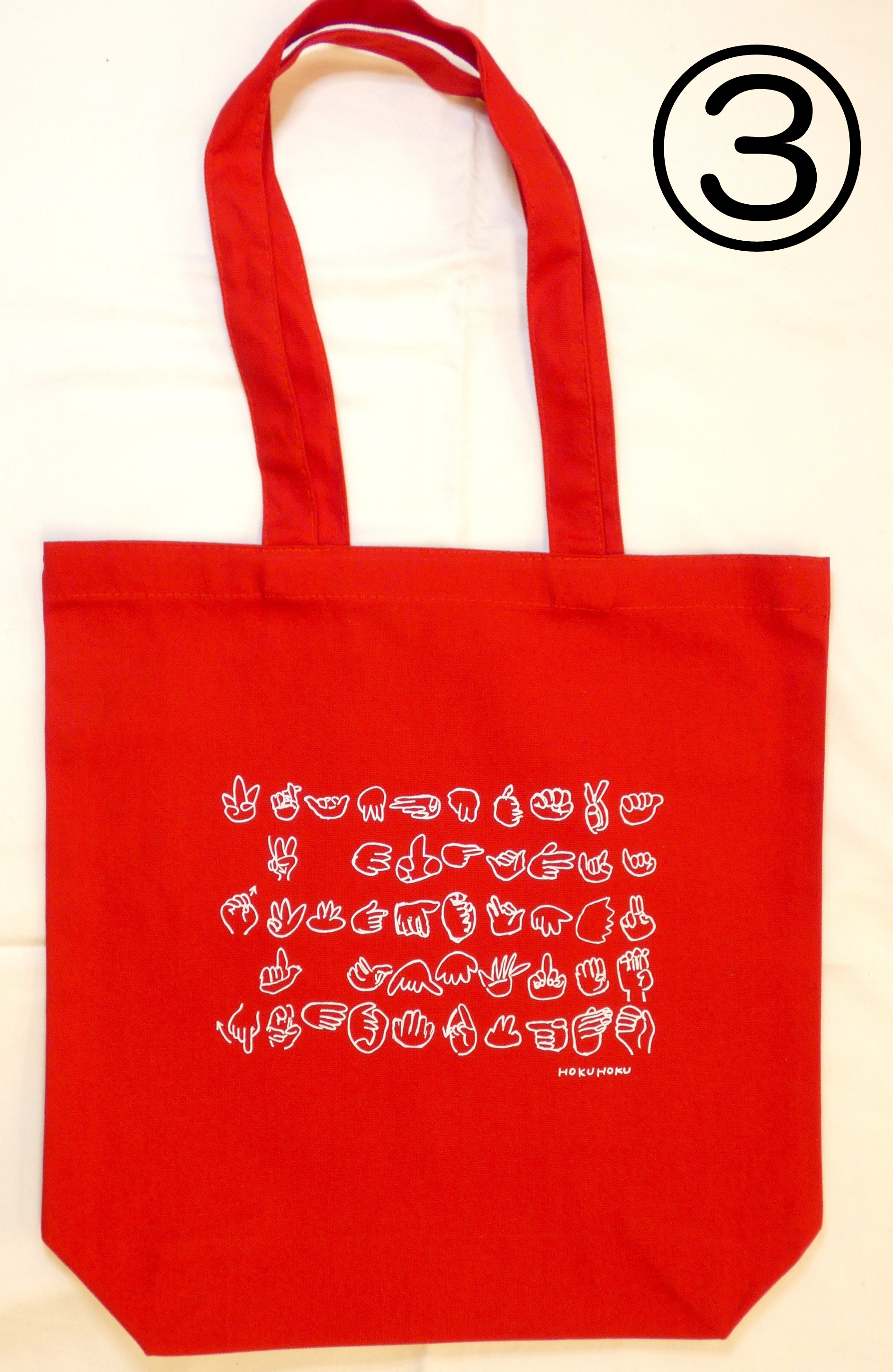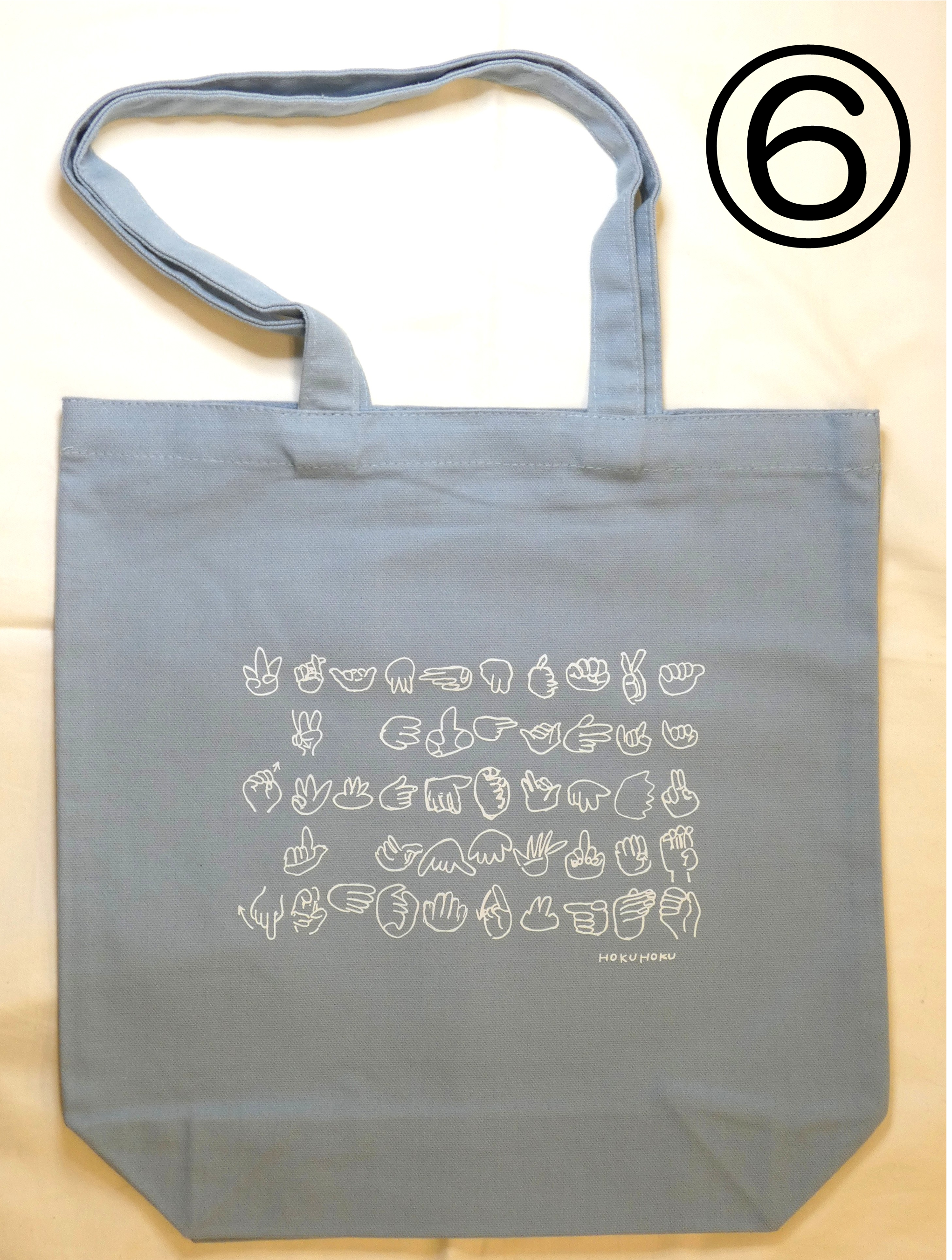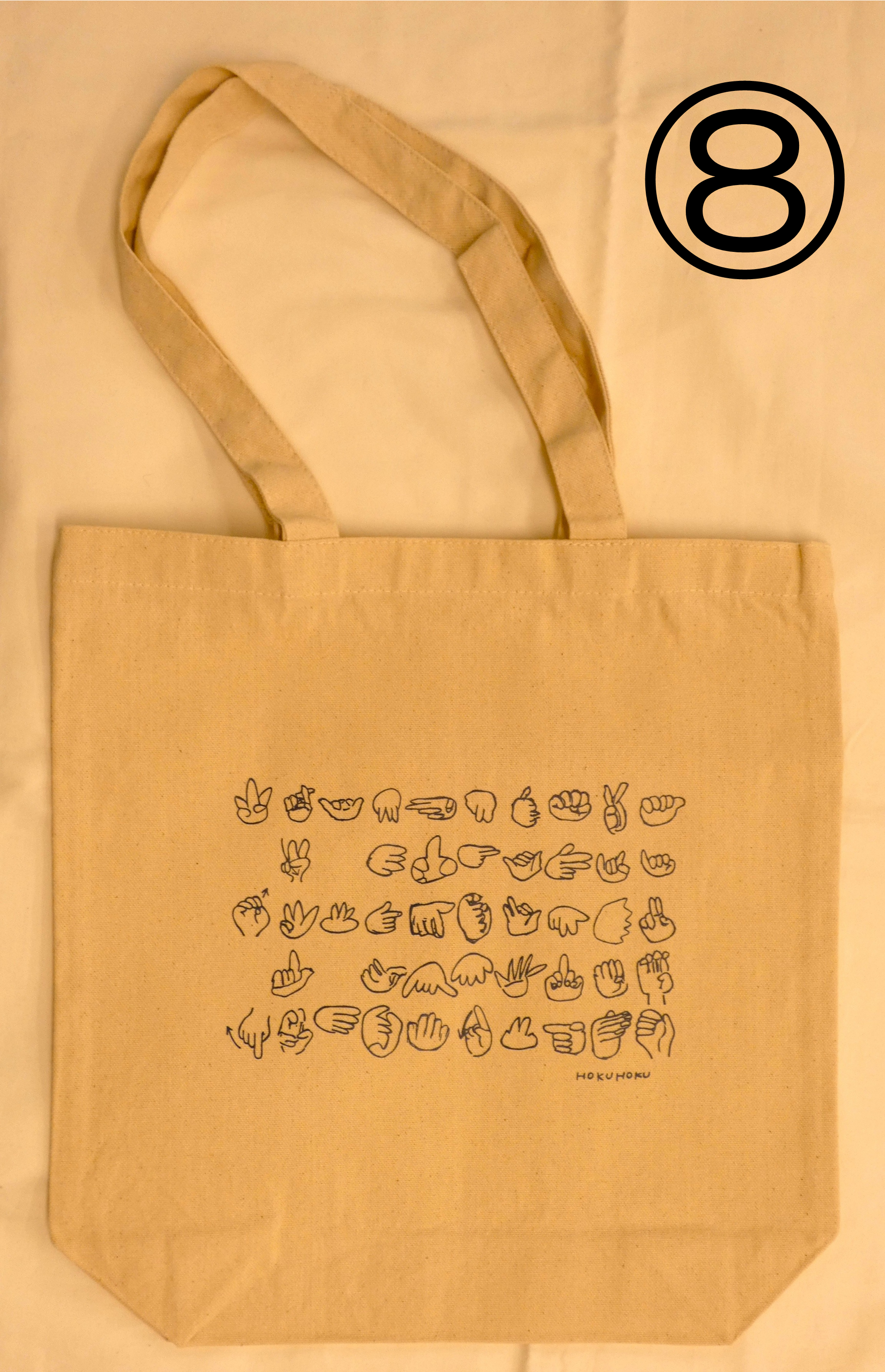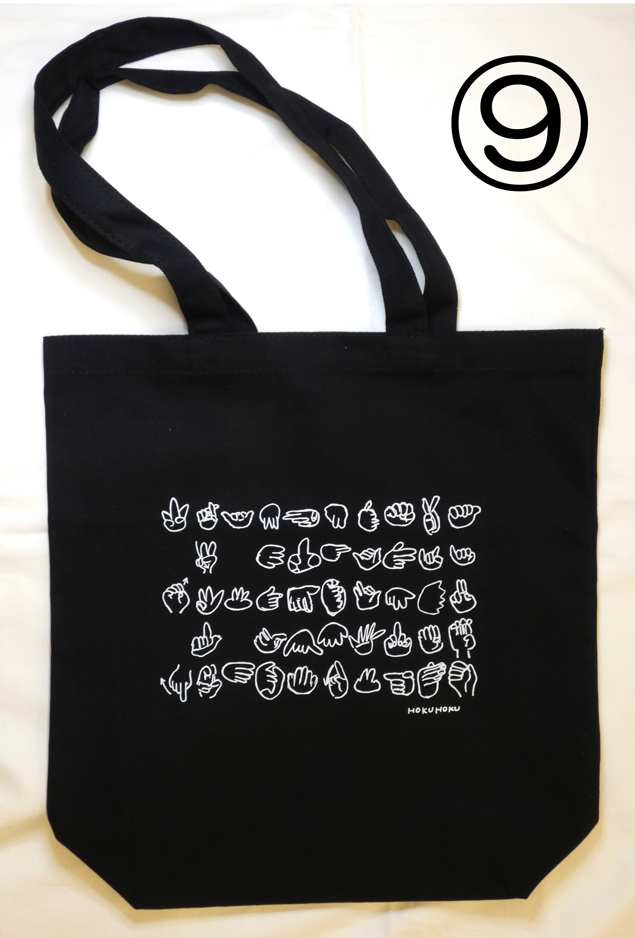 ほくほくの仲間が書いた指文字シリーズのトートバッグになります。